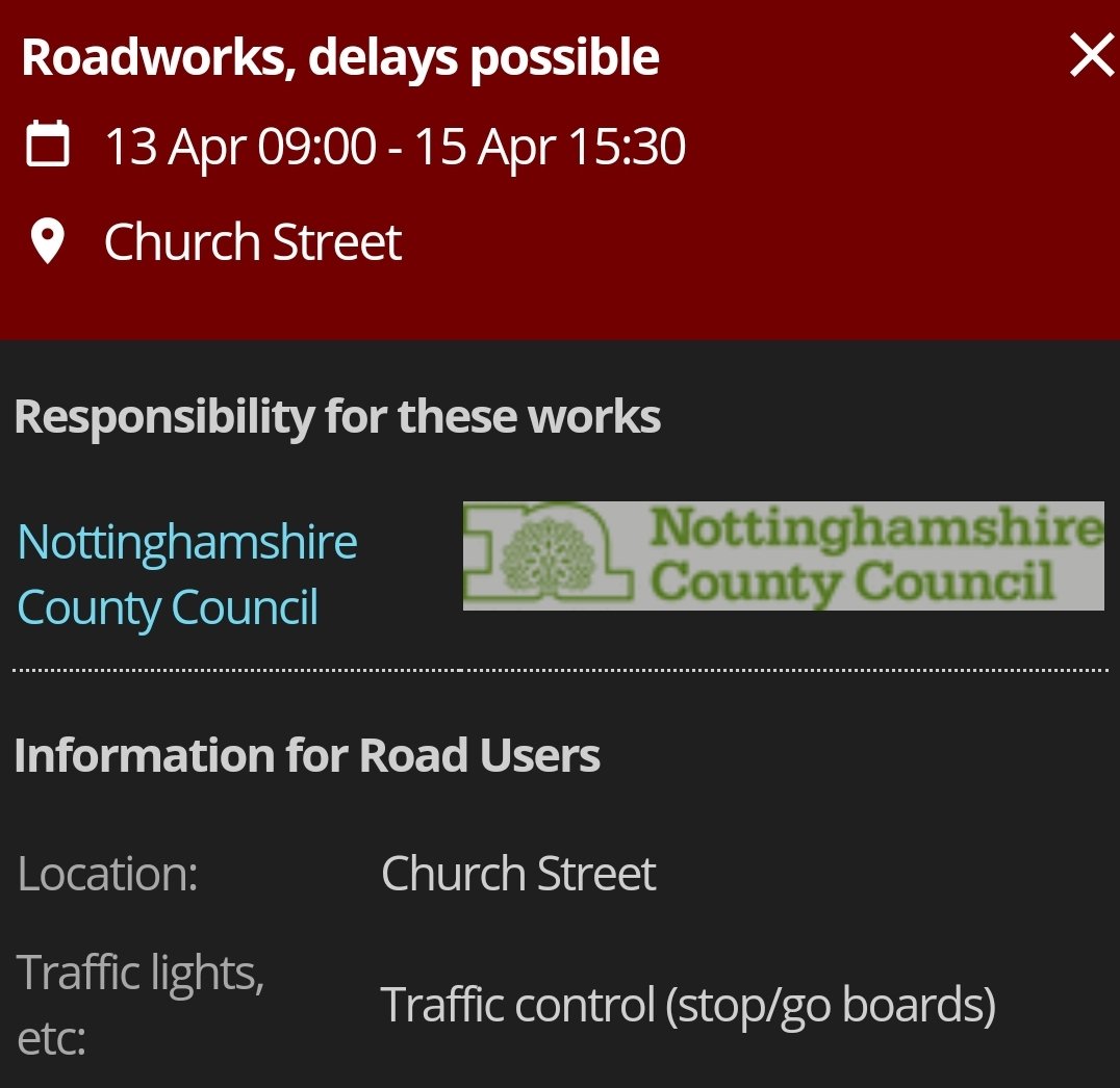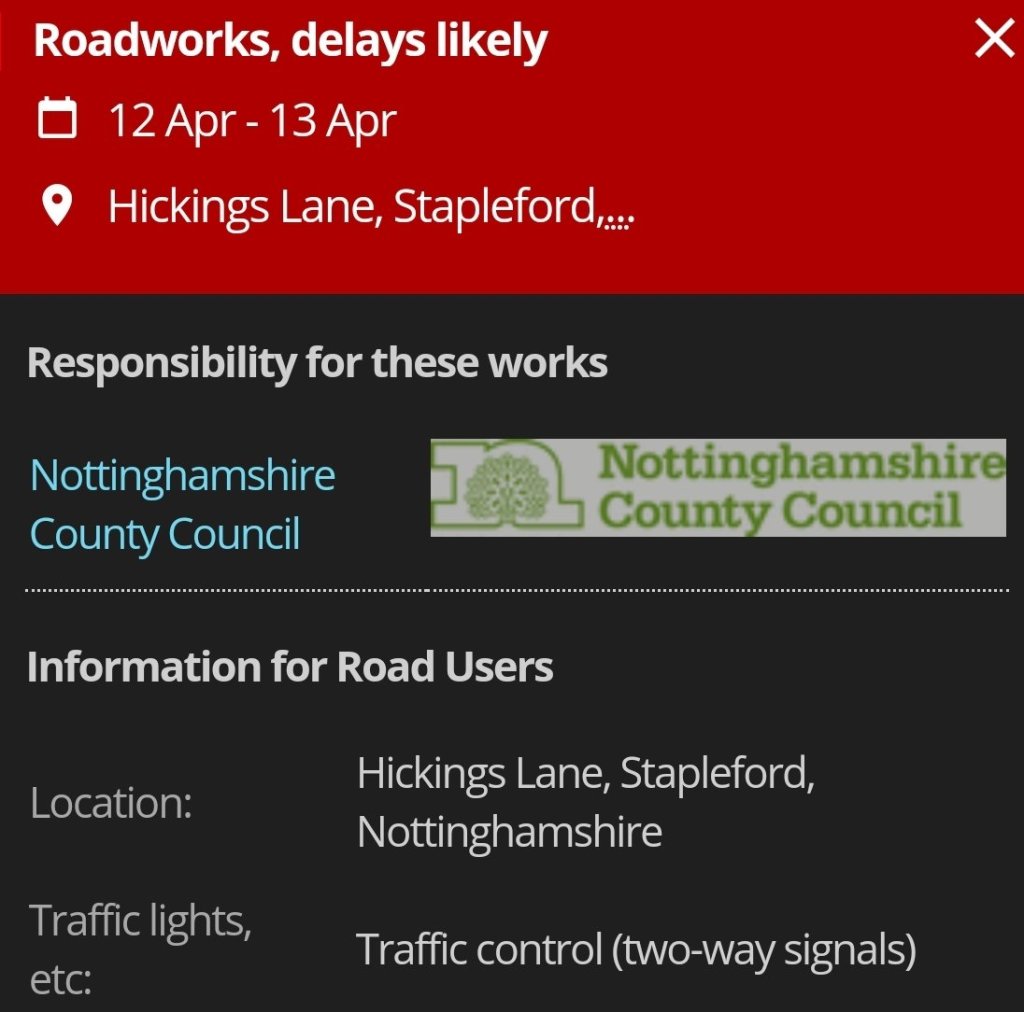 Latest notices of upcoming roadworks.
