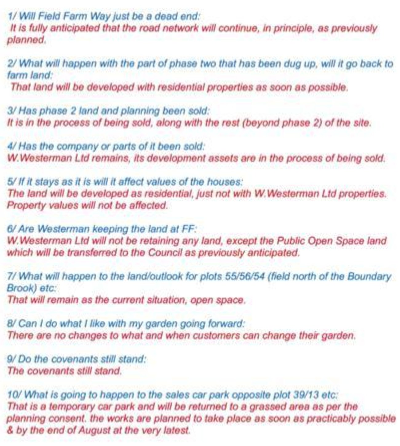 I have been told that Westerman Homes are no longer carrying out anymore phases after phase 1 and will not be building the rest of the development themselves.