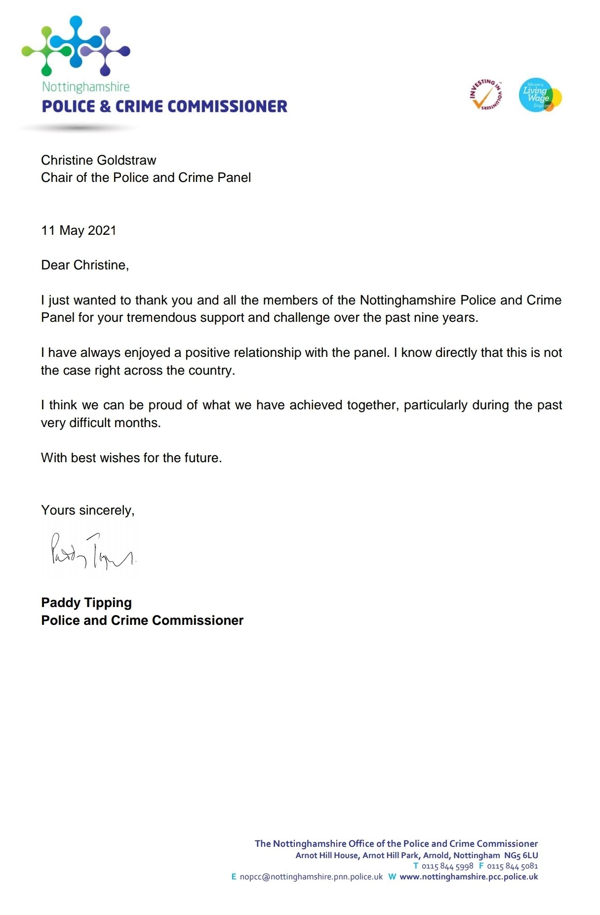 It is always nice to receive a thank you for the work being done and it was kind of former Police and Crime Commissioner, Paddy Tipping to acknowledge just this.