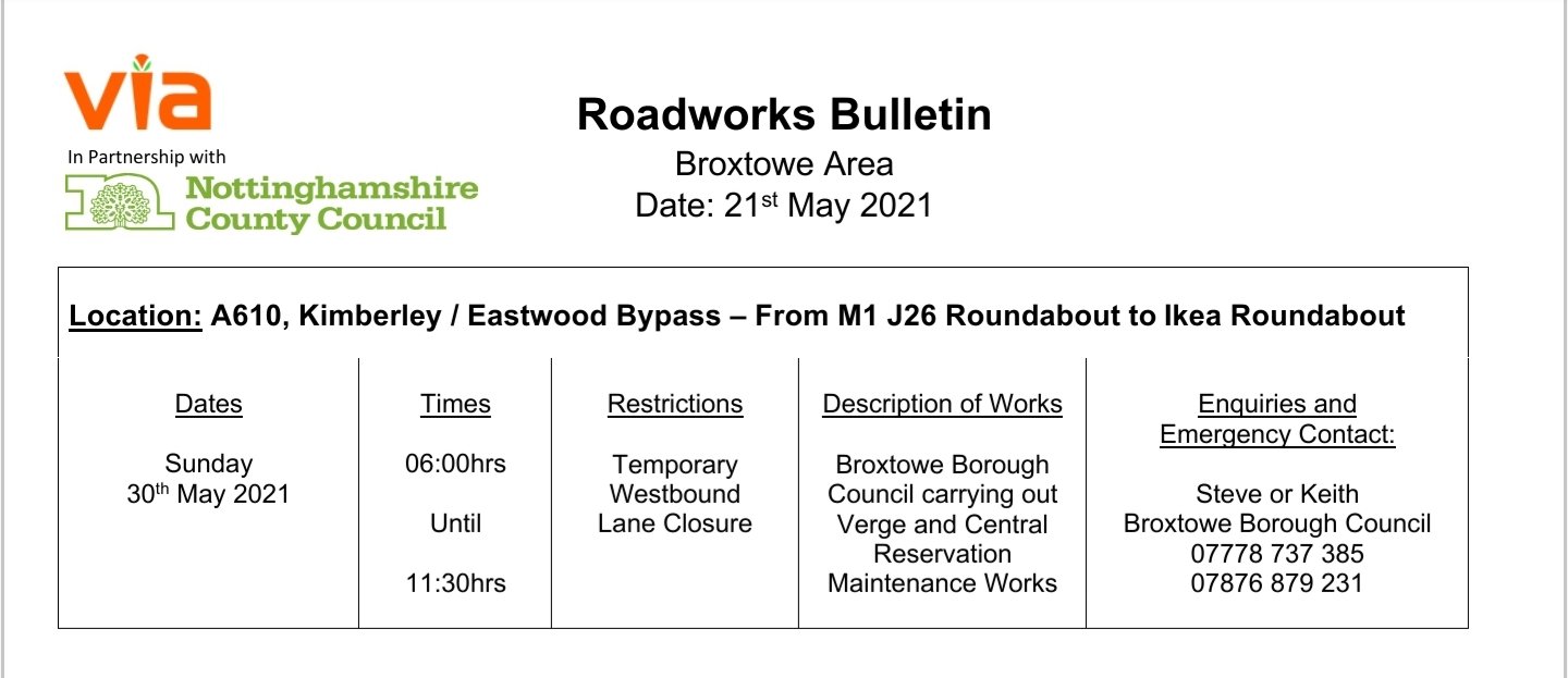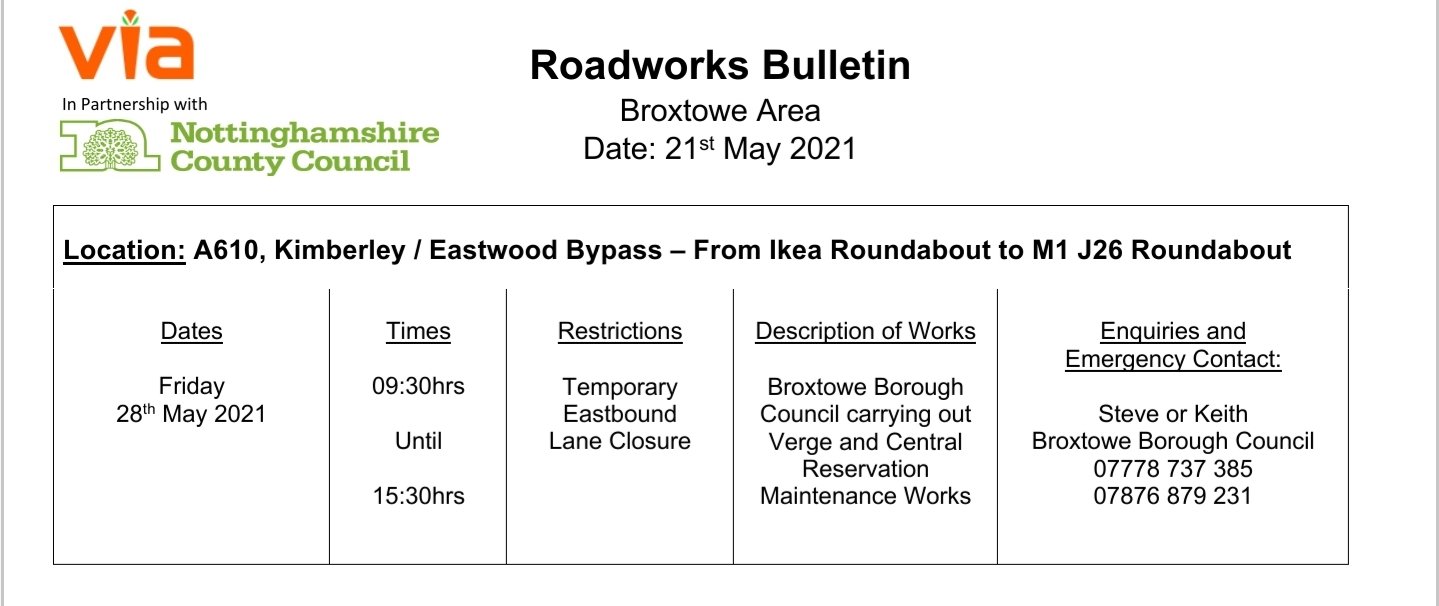 Please find attached Roadworks Bulletins for Temporary Lane Closures on the following;