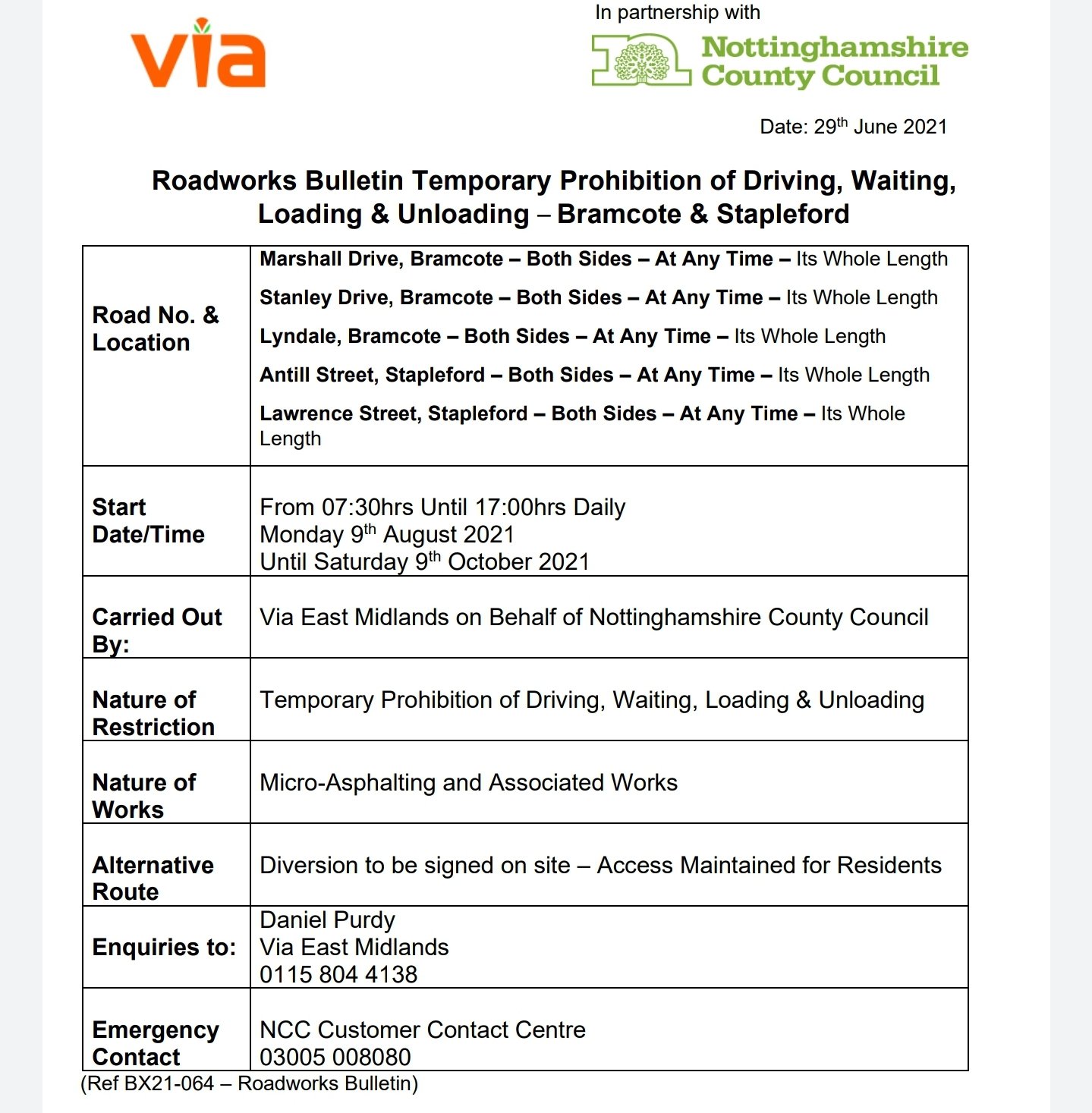 Roadworks Bulletin – Temporary Prohibitions – Various Roads, Bramcote & Stapleford 29Jun 2021Add a comment Roadworks Bulletin – Temporary Prohibitions – Various Roads, Bramcote & Stapleford Share this:Tweet Click to share on WhatsApp (Opens in new window) WhatsApp Click to email a link to a friend (Opens in new window) Email Like Loading... Related