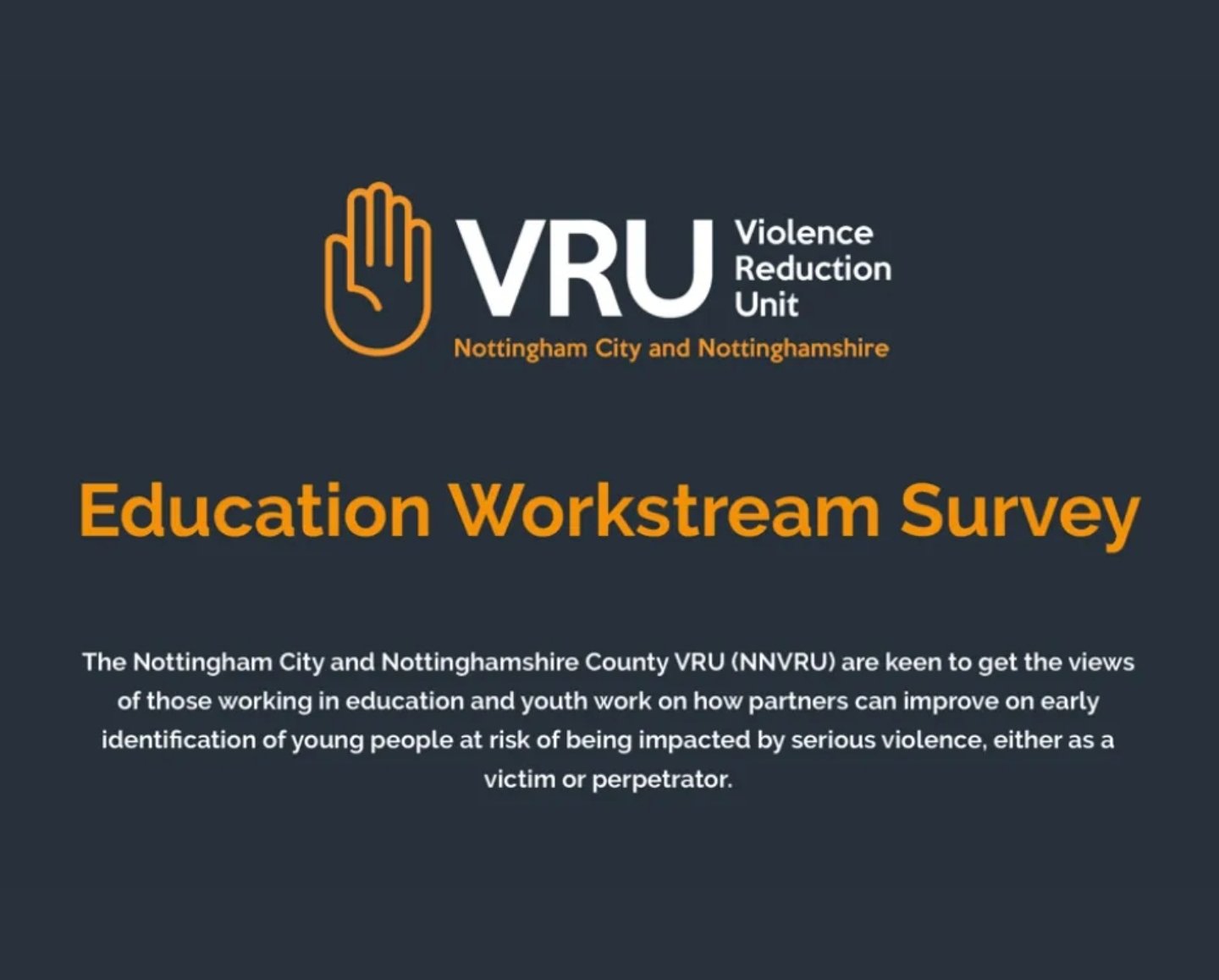 The Nottingham City and Nottinghamshire County VRU (NNVRU) are keen to get the views of those working in education and youth work on how partners can improve on early identification of young people at risk of being impacted by serious violence, either as a victim or perpetrator.