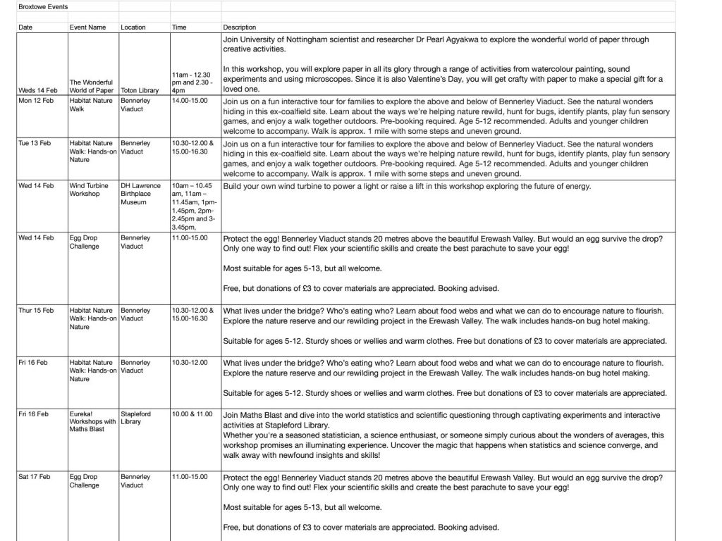 As you will be aware Broxtowe Borough Council is supporting the Festival of Science and Curiosity which takes place from 5 – 16 February 2024 across Nottingham and Nottinghamshire.