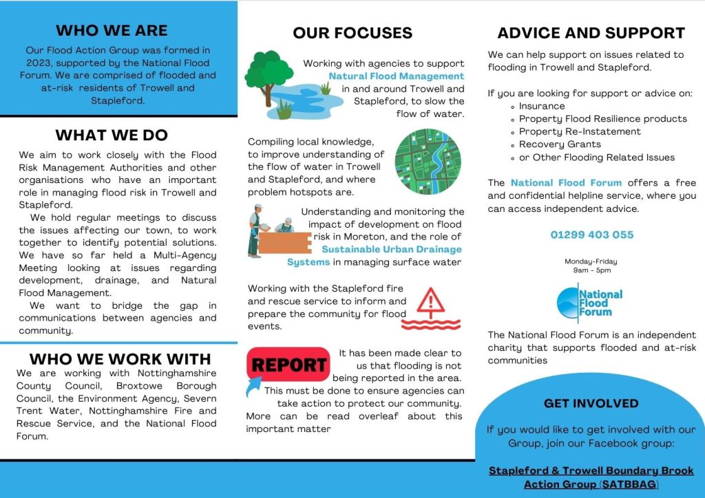 If you’d like to get involved with our Flood Action Group, join our Facebook group: [Stapleford & Trowell Boundary Brook Action Group (SATBBAG)].