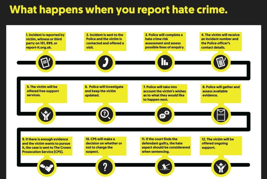 - Risk Assessment: The Police complete a hate crime risk assessment and assess possible lines of enquiry.